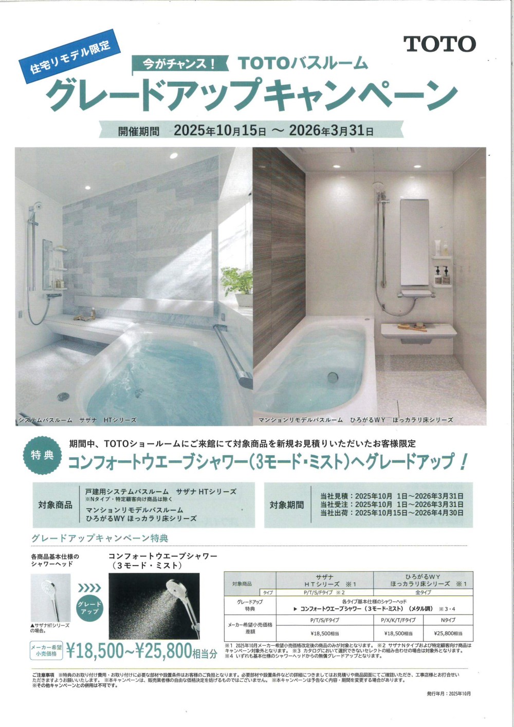 2025年10月15日~2026年3月31日 TOTOバスルーム グレードアップキャンペーン