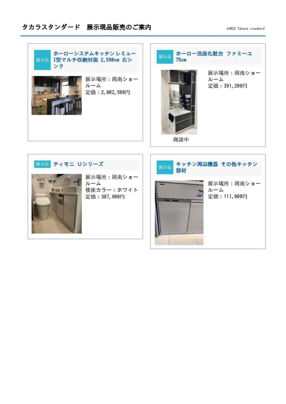 2025年7月~ Takara standard 周南ショールーム 展示現品売却処分の御案内